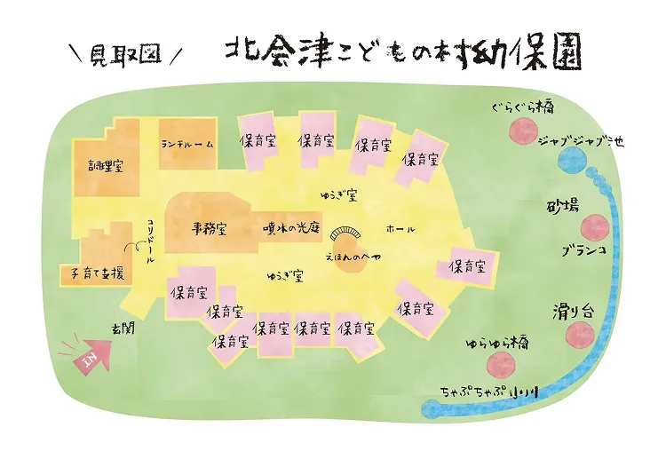 ▲北会津こどもの村幼保園 見取図